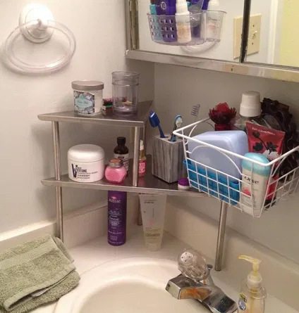 Just imagine how much space you could save by adding this u shaped shelf inside your cabinet. It lifts everything up and suddenly the whole area feels more open.