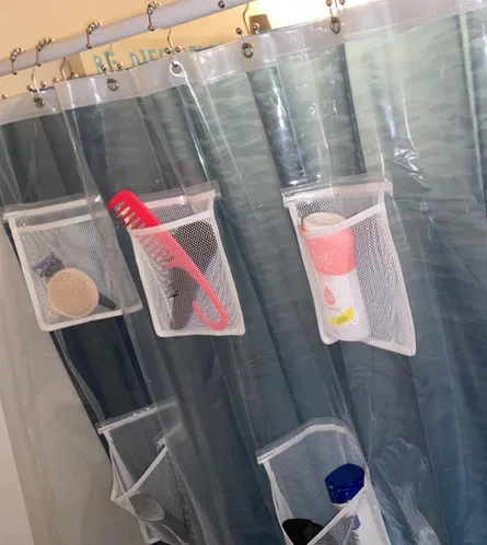 Speaking of clever little ideas, have you seen this shower curtain with pockets? It keeps everything you need right where you can reach it.