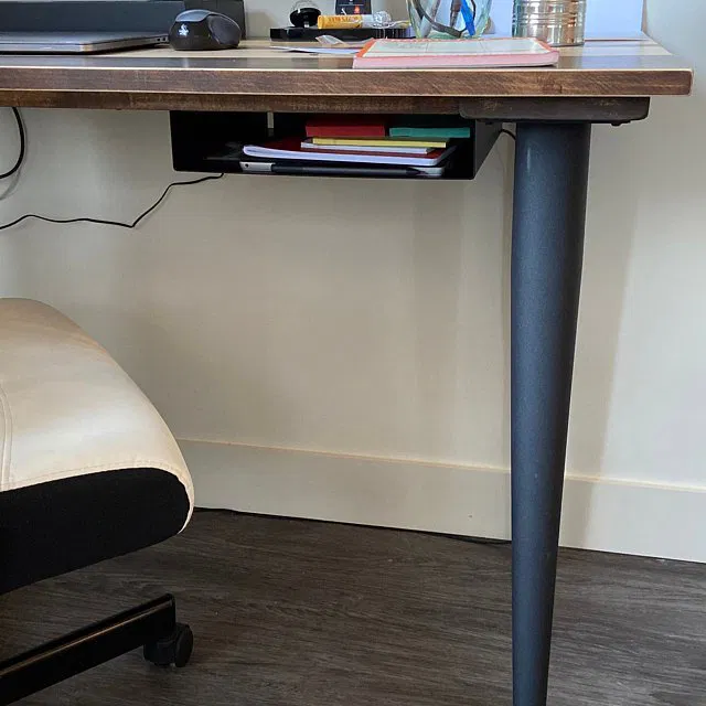 This under the desk storage idea is such a simple fix. It gives you a quiet place to keep all your stationery so your workspace feels clear again.