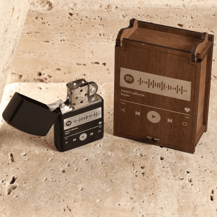 A lighter designed like a music player screen turns a favorite song into something you can actually hold.