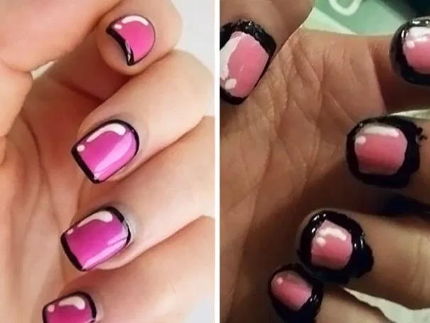 They had everything lined up — the pretty pink polish, the cute white dots, the bold black outline…