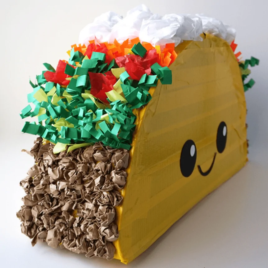 This taco themed Valentine box is bright, playful, and full of personality. The layered paper details and smiling face give it a fun handmade look kids love.