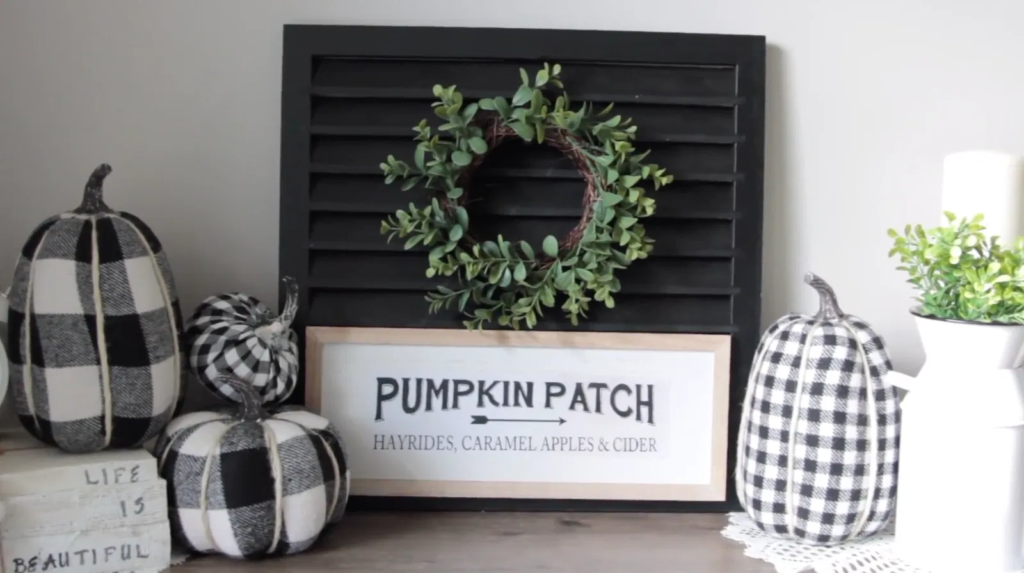Then she added her own creative touch. She designed the pumpkin patch sign herself and attached it right onto the shutter, turning a few simple items into something that looks completely custom.