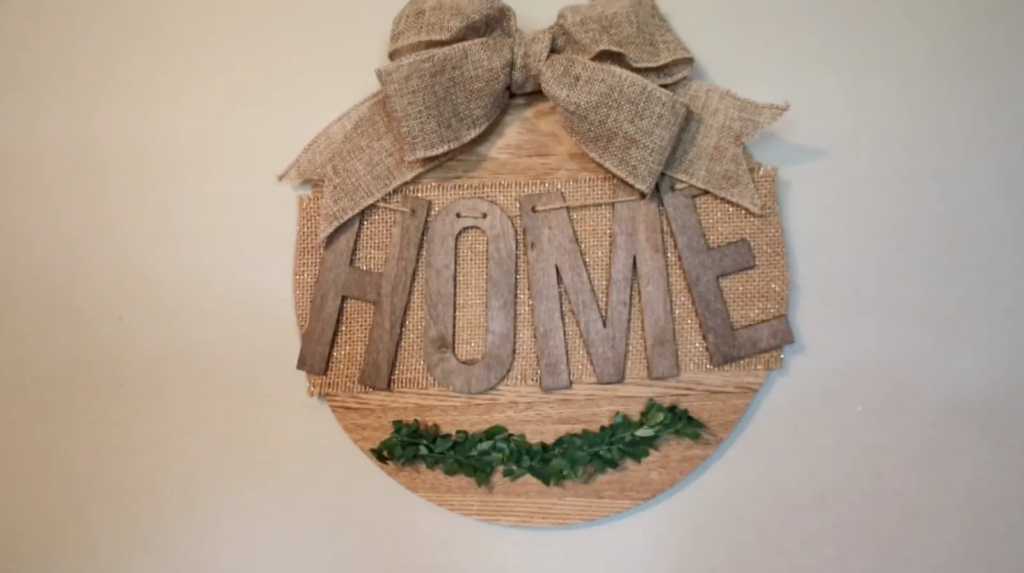 This charming sign actually started as several different finds from Target. The “HOME” letters were originally part of a larger garland, and the burlap bow came from a completely different decoration.