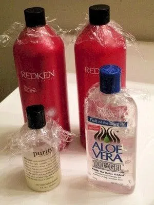 9. Use some plastic wrap to stop bottles from leaking.