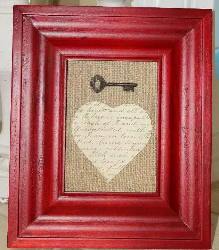 Inside, a soft heart shape and an old key tell a quiet love story.