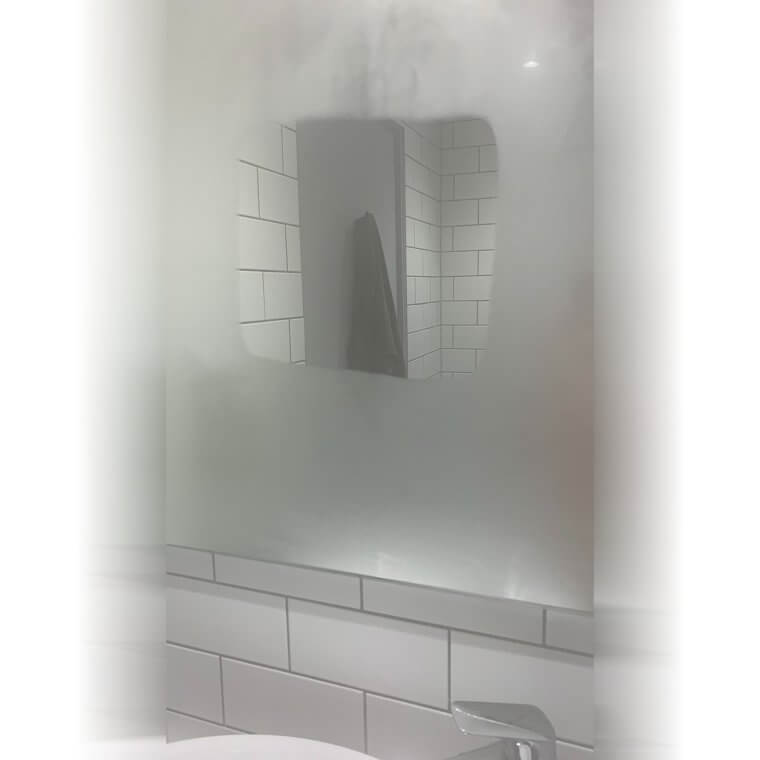 This creates a light protective layer that helps stop steam from fogging it up when you shower.