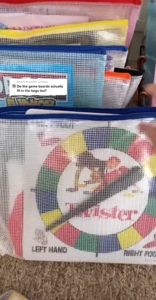 Kristie shared that she used the 11×16 size bags, and they even fit the stiff plastic boards from games like Guess Who and Scrabble.