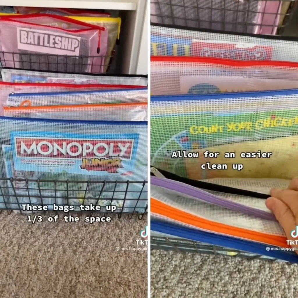 She emptied every game box and slipped each one into a mesh bag she found on Amazon.