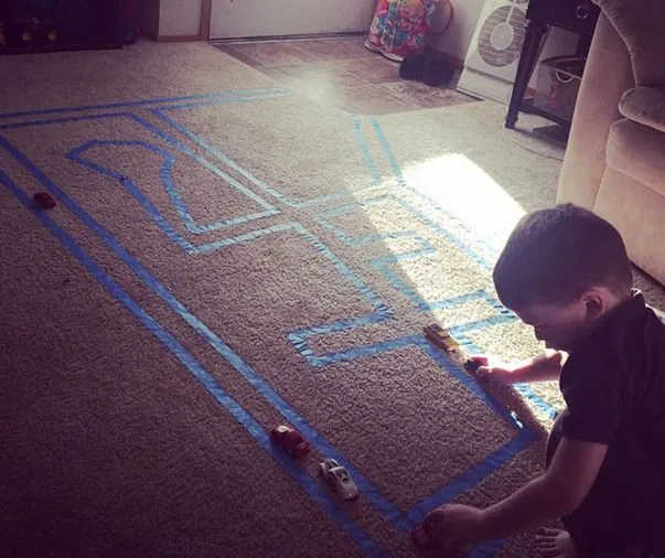 Use tape to create a car course on your floors for your kids.