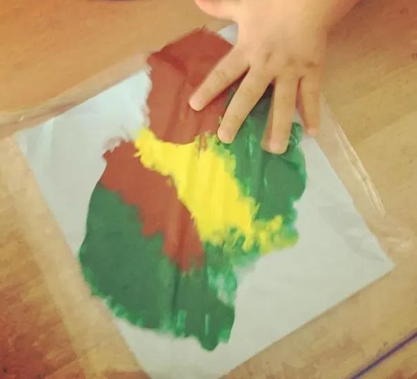 All you need are some paint, a sheet of paper, a plastic bag, and a little imagination. Place the paint and paper inside or beneath the plastic bag, and kids can press, poke, and squish the paint through the plastic to create their own colorful artwork without the usual mess.