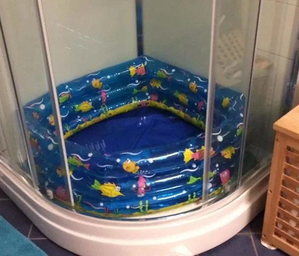 Make a fake pool in your shower with an inflatable pool.