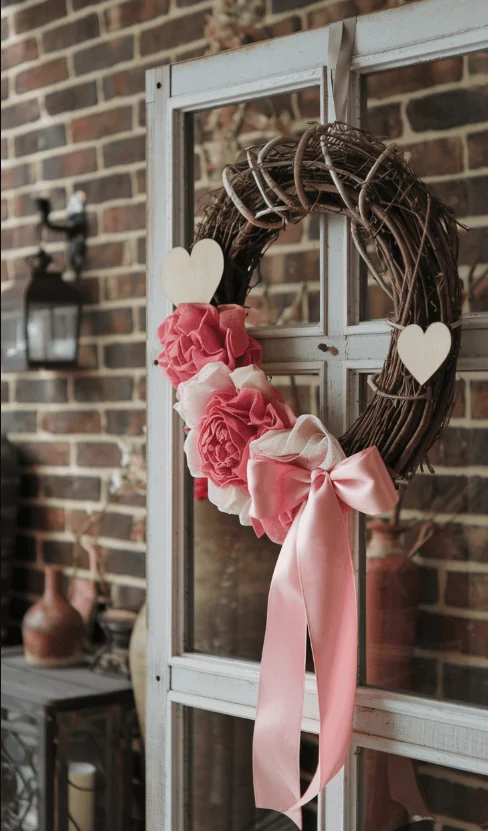 Use a grapevine or twig base to create a soft Valentine wreath.