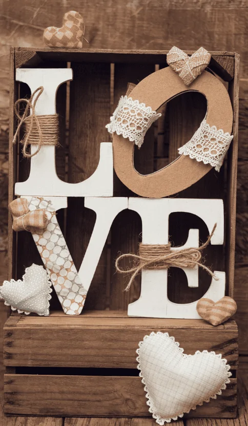Decorate wooden or cardboard letters that spell LOVE with twine, lace, or burlap.