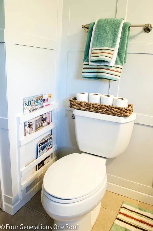 Make sure you, your family, and anyone who stops by always have something to flip through by adding a simple, stylish magazine rack to your bathroom. It is a small touch that makes the space feel a little more welcoming.