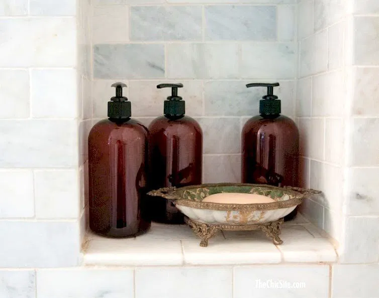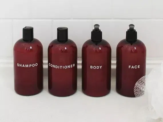 6. Store all of your shampoos, conditioners, and body washes in matching containers.