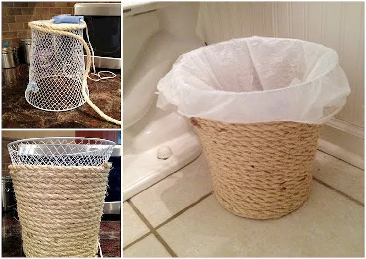 12. What was once a boring trash can from the dollar store is now an eye-catching piece for that coastal or farmhouse bathroom you’ve been dreaming of.