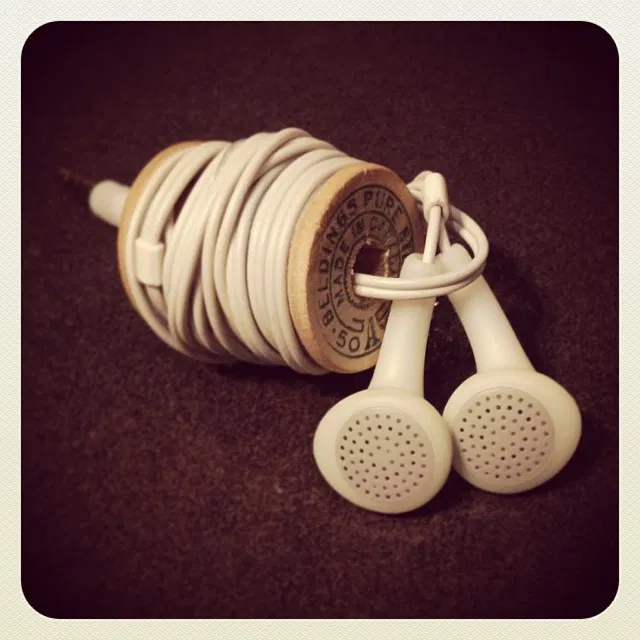 You probably have a spool somewhere in your home, and if it’s almost empty, clear the remaining thread and wrap your headphones around it for portability and reliable storage.