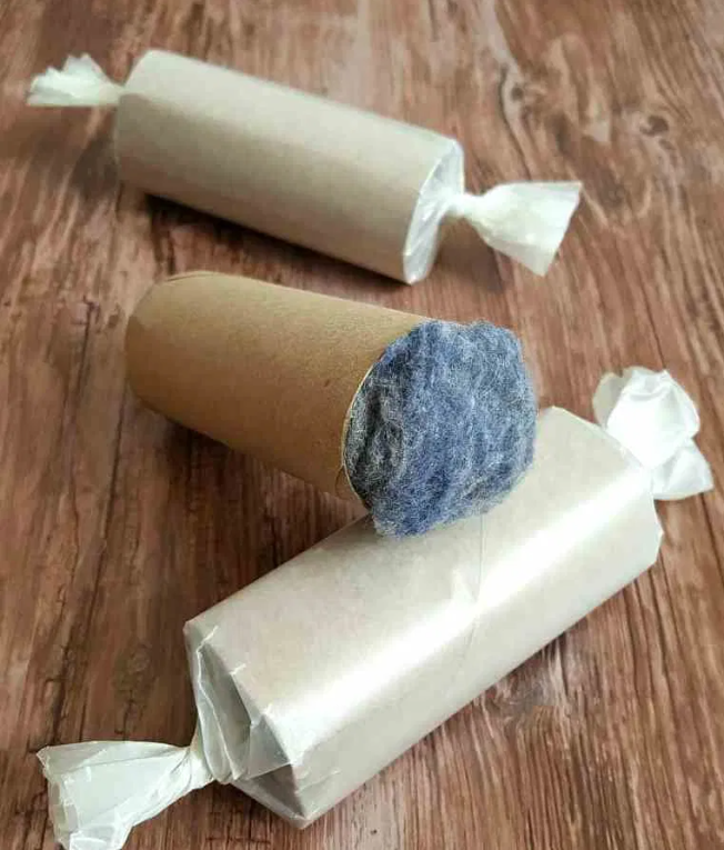 This is one of those old-school, clever tricks that actually works. Take an empty toilet paper roll, stuff it full of dryer lint, then wrap the whole thing in wax paper.