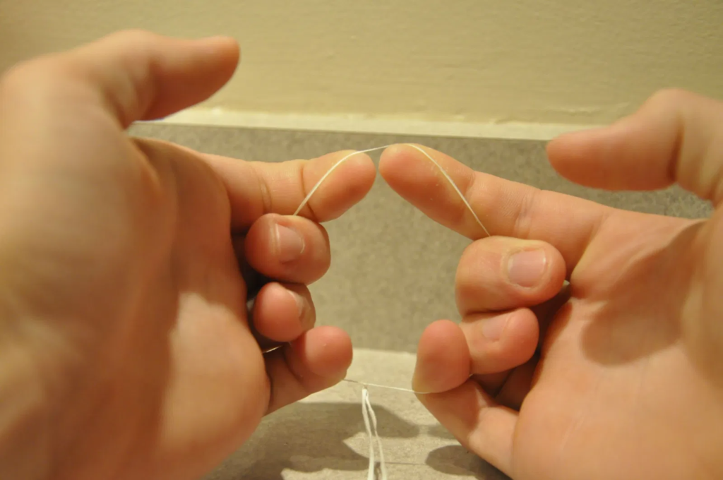 Instead of wrapping floss tightly around your fingers and cutting off circulation, try this easier way. Tie the two ends of the floss together to make a loop.