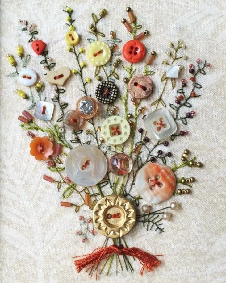 Those extra buttons tucked away in drawers finally get their moment. Paired with simple stitches, they turn into the sweetest little floral bouquet.