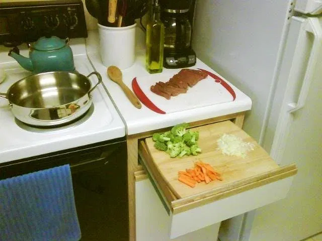A cutting board doesn’t have to live on the countertop. Placing it over a drawer gives you extra space for chopping, prepping, or anything else you need.
