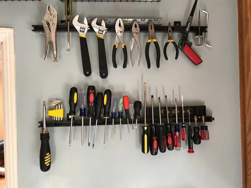 Redditor gheeboy shows a wall-mounted setup, but you can also use the inside of cupboard doors to save even more space.
