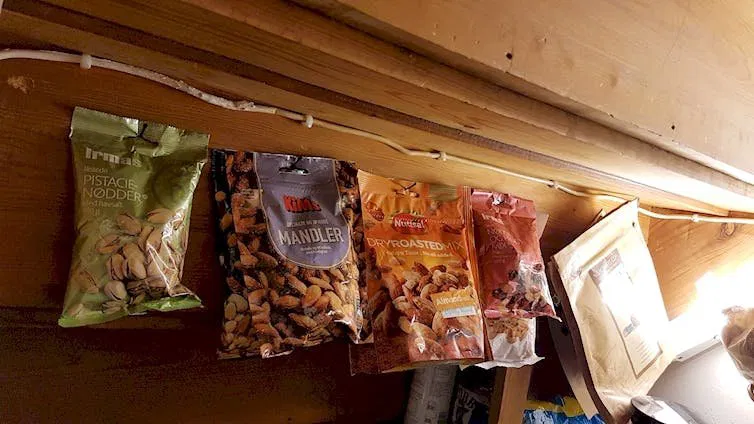 Many light food items come with holes for hanging, so why not hang them at home too?
