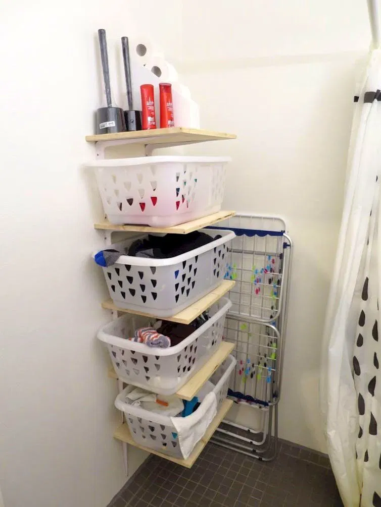 Lineakat from Instructables shows a simple solution: a wall-mounted laundry system that keeps everything organized and frees up floor space.