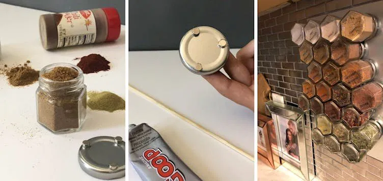 Ashley Adams from Dreams Crumb True has a smart DIY: an interlocking design with magnetic lids that keeps spices organized and easy to grab.