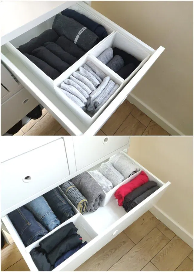 If your drawers are overflowing, try this: take everything out and roll your clothes instead of folding.