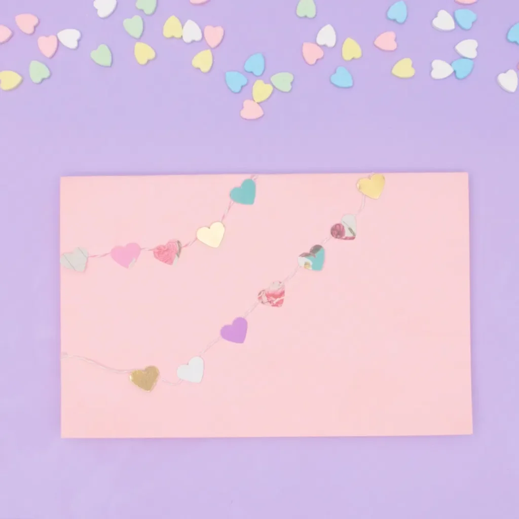 Use hot glue to attach the hearts along the strings and watch your garland come to life.