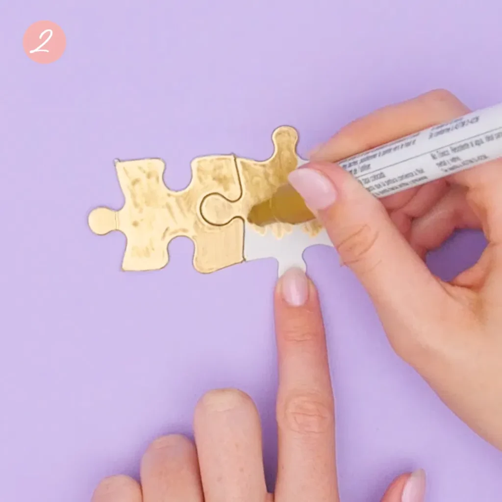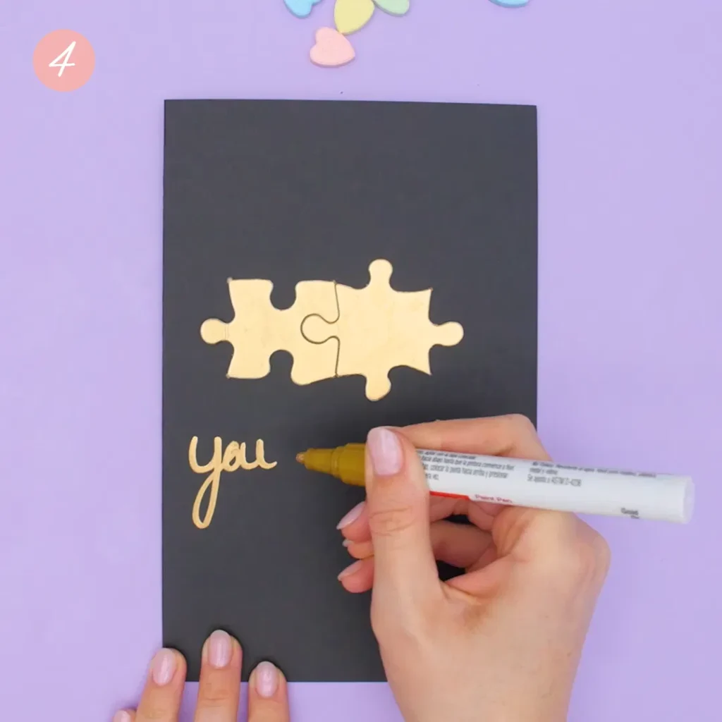 Using the same acrylic paint pen, write a romantic message just beneath the puzzle pieces.