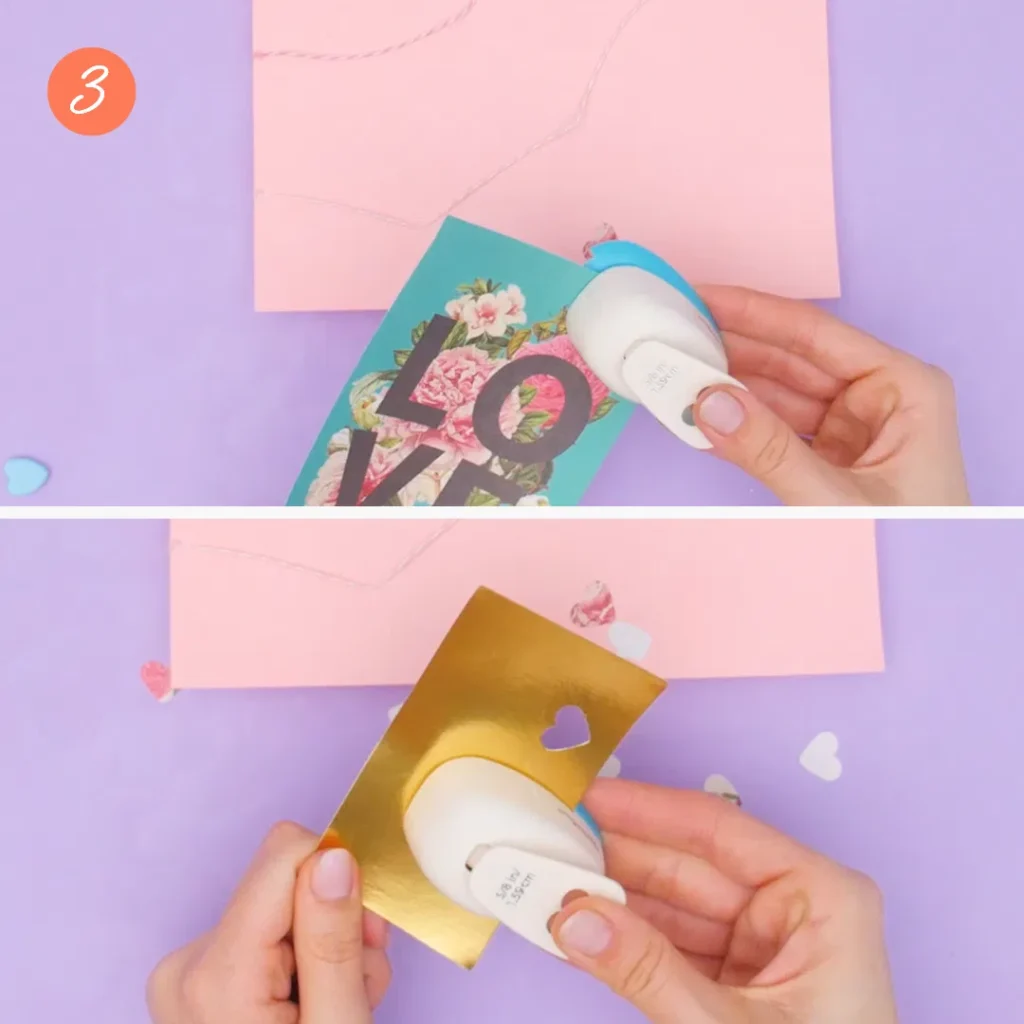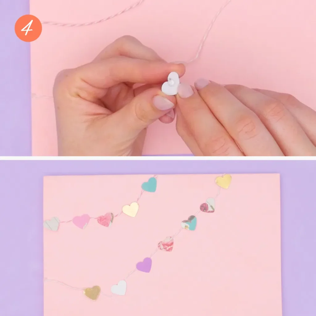 Grab a heart hole punch and start cutting hearts from pretty paper.