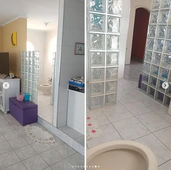 But this version of it is definitely not the goal. Some areas in a home need privacy, and the bathroom is at the top of that list.