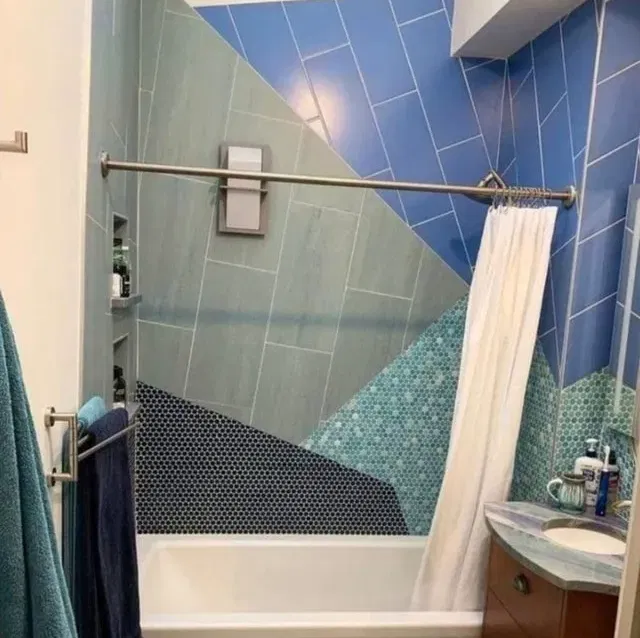 And that shower curtain rod? I have no clue what the plan was there. How is anyone supposed to take a normal shower in that setup? It feels like a puzzle with no solution.