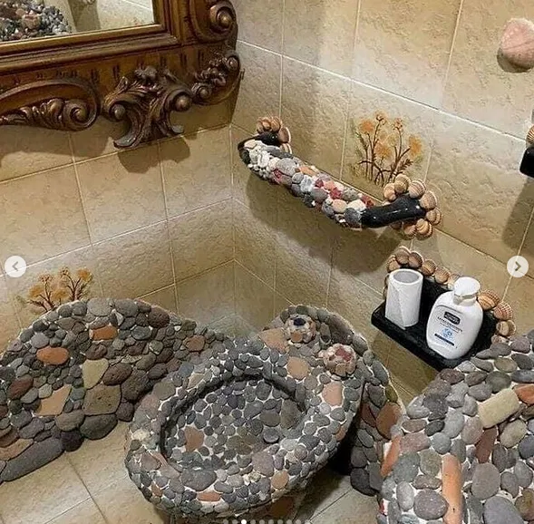 If you have ever dreamed of owning a custom toilet, I really hope you skip this idea. A seat covered in stones is not going to make anyone comfortable.